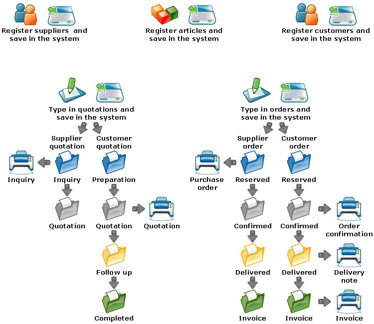 Suppliers, Articles, Quotations, Orders,
